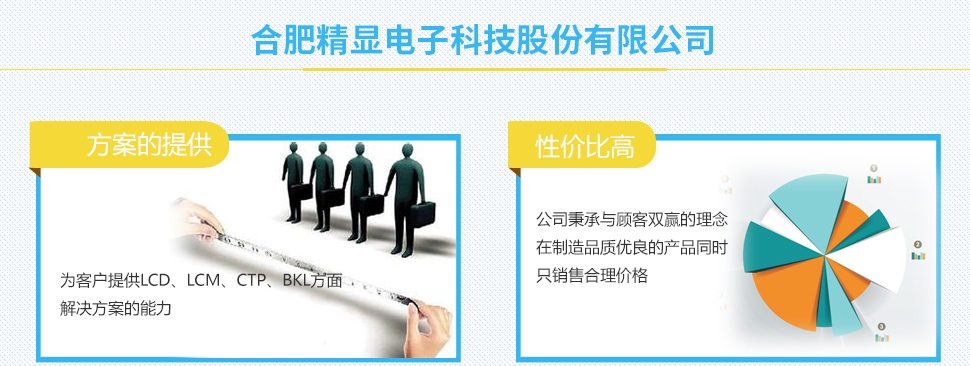 ?合肥精顯電子科技股份有限公司成立于2012年,由液晶行業(yè)知名企業(yè)廈門(mén)精顯電子有限公司投資建設(shè),是一家研發(fā)、生產(chǎn)、銷(xiāo)售高品質(zhì)液晶屏(LCD)、液晶顯示模塊(LCM)、背光(LED)、電容式觸摸屏(CTP)等節(jié)能環(huán)保產(chǎn)品并能為顧客提供解決方案的高新科技企業(yè)。 ?公司占地55畝,擁有建筑面積超過(guò)20000平米和潔凈廠(chǎng)房5400平米。 ?公司擁有一個(gè)超過(guò)15年以上LCD行業(yè)運(yùn)營(yíng)制造經(jīng)驗(yàn)的團(tuán)隊(duì)。 ?公司獲得研發(fā)專(zhuān)利20余項(xiàng)。 ?公司通過(guò)C-TPAT認(rèn)證,ISO9001:2008認(rèn)證,產(chǎn)品通過(guò)了ROHS、REACH。 ?我們產(chǎn)品廣泛應(yīng)用于智能儀表(水表,電表,氣表)、家電、儀器儀表、計(jì)量器械、文教 器具、UPS電源、智能手機(jī)機(jī)、平板電腦等電子產(chǎn)品的顯示和控制。目前我們已樹(shù)立了良好的品牌形象,并與眾多公司(如GE, Ja...